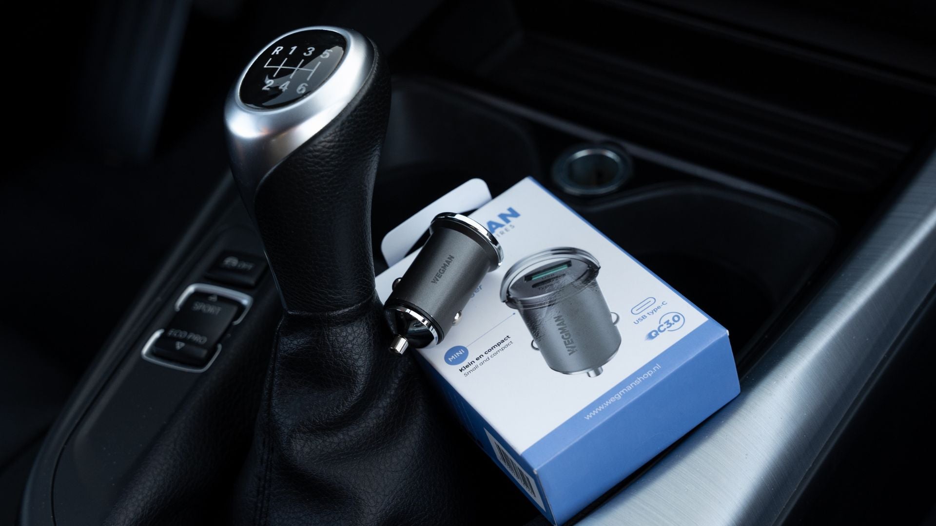 Nooit meer traag opladen in de auto. Met de Wegman 45W Autolader laad je je smartphone supersnel en veilig op, zelfs tijdens korte ritten.